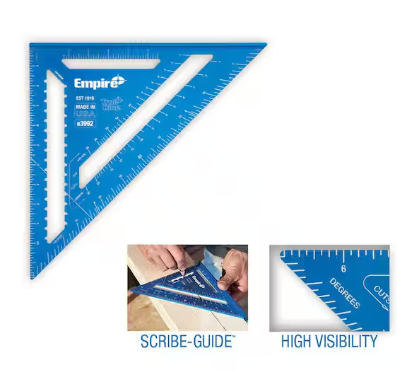 Precision-engineered aluminum rafter square featuring laser-etched markings for durability and accuracy. The 12-inch design delivers reliable measurements for framing, roofing, and general carpentry work. Lightweight yet sturdy construction withstands jobsite demands while maintaining clear, legible graduations. Ideal for both professional contractors and serious DIY enthusiasts who demand dependable layout tools.