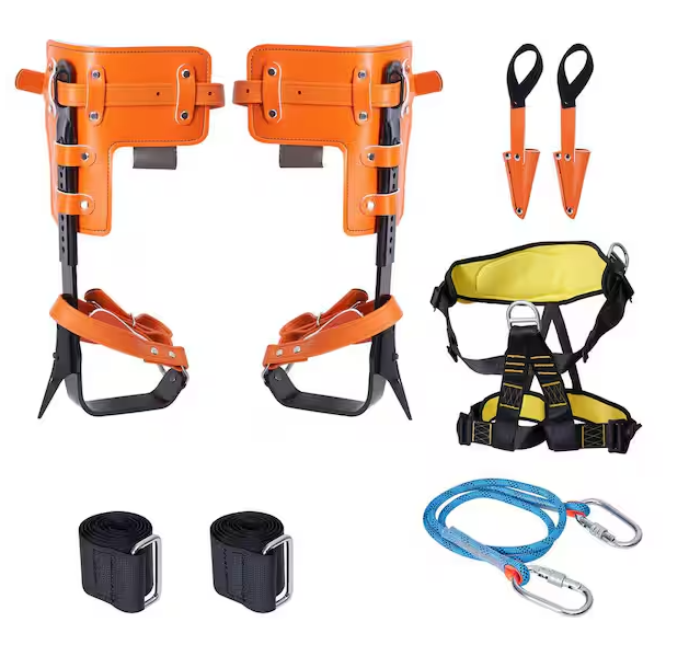 Designed for professional arborists and serious climbers, this Tree Climbing Spikes Set features durable alloy steel spurs engineered to support up to 350 lbs. The set includes a safety rope and harness, ensuring secure and stable climbing on various tree types. Built for reliability and comfort, these climbing spurs provide excellent grip and control, allowing you to work efficiently at height with confidence and safety.